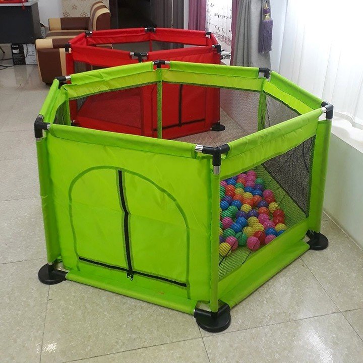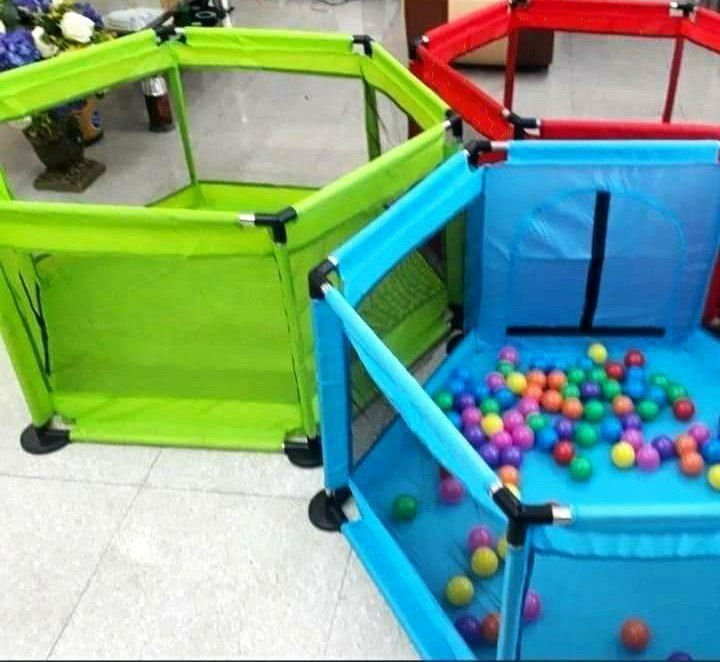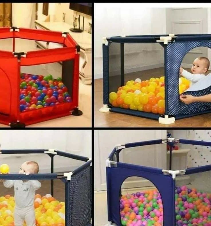 - غرفة أطفال سداسية الأضلاع متعددة الإستخدامات : بركة طابات + قفص للأطفال ..مخزن ألعابهم